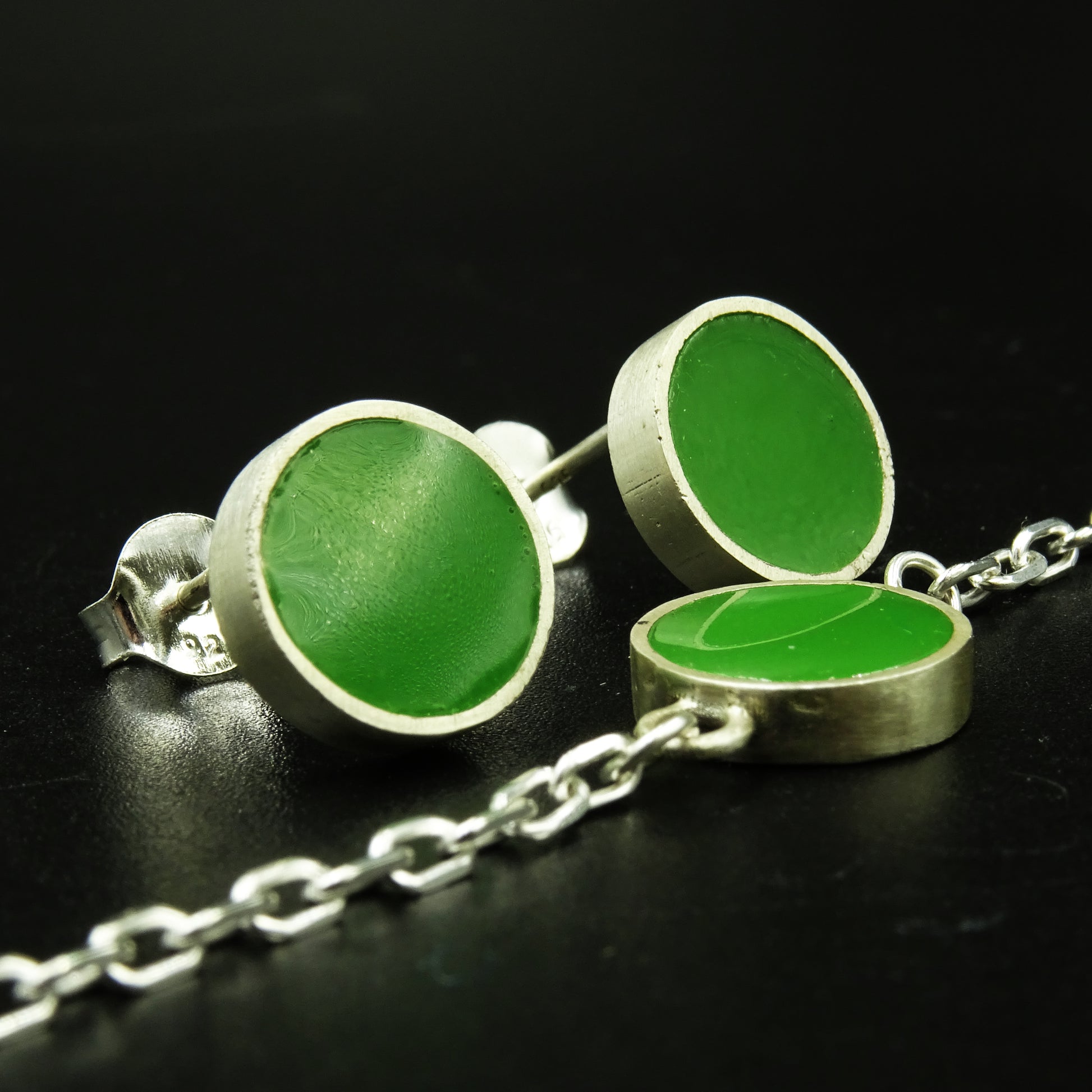 Limecrest Core brings a bright, vivid green enamel inlay to a handcrafted 950 silver frame. The 11 mm circular design delivers a fresh, energetic pop of color that stands out without overpowering. Perfect for those looking for vibrant enamel jewellery, minimalist silver earrings, and high-quality handmade pieces crafted in Greece.
