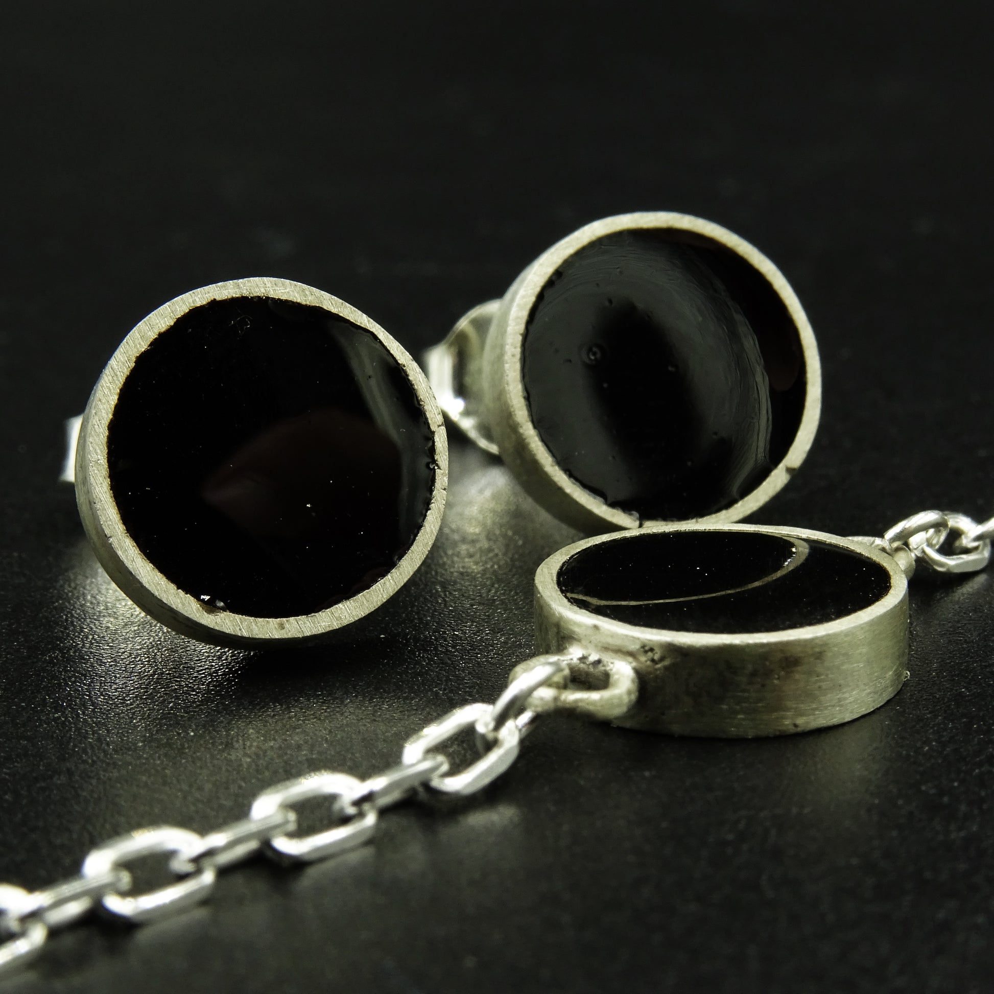 Nocturne Circle is a bold black-enamel jewellery set crafted in 950 silver. Its 11 mm minimalist design offers a clean, modern, and timeless look. Perfect for monochrome lovers, minimalist fashion, and premium handcrafted silver jewellery.