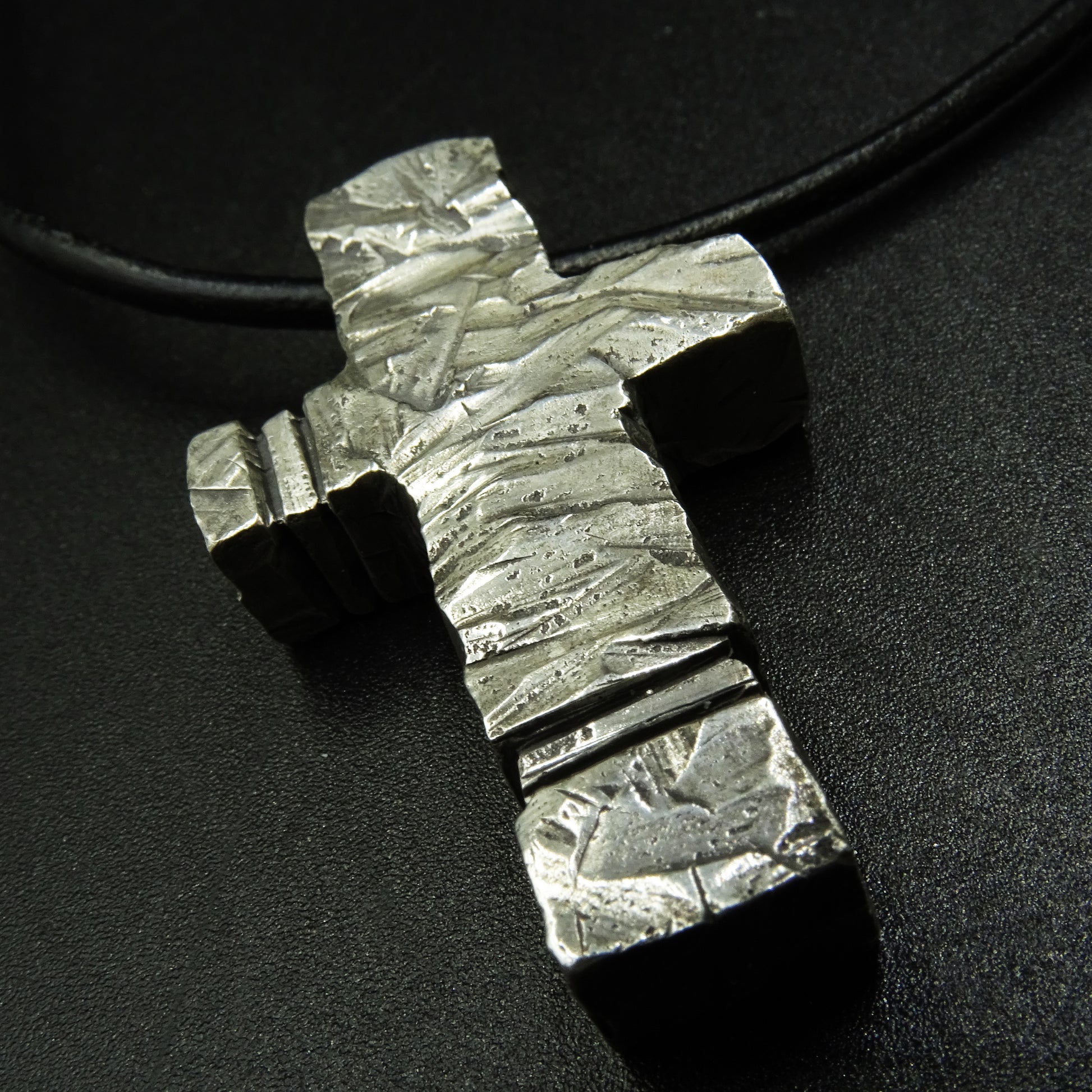 Forged in raw silver, Shattered Creed carries the scars of struggle and resilience. Its fractured, uneven surfaces tell the story of a faith tested yet unbroken, a symbol of strength born from hardship. Worn close to the heart, it is a reminder that even in brokenness, there is endurance.