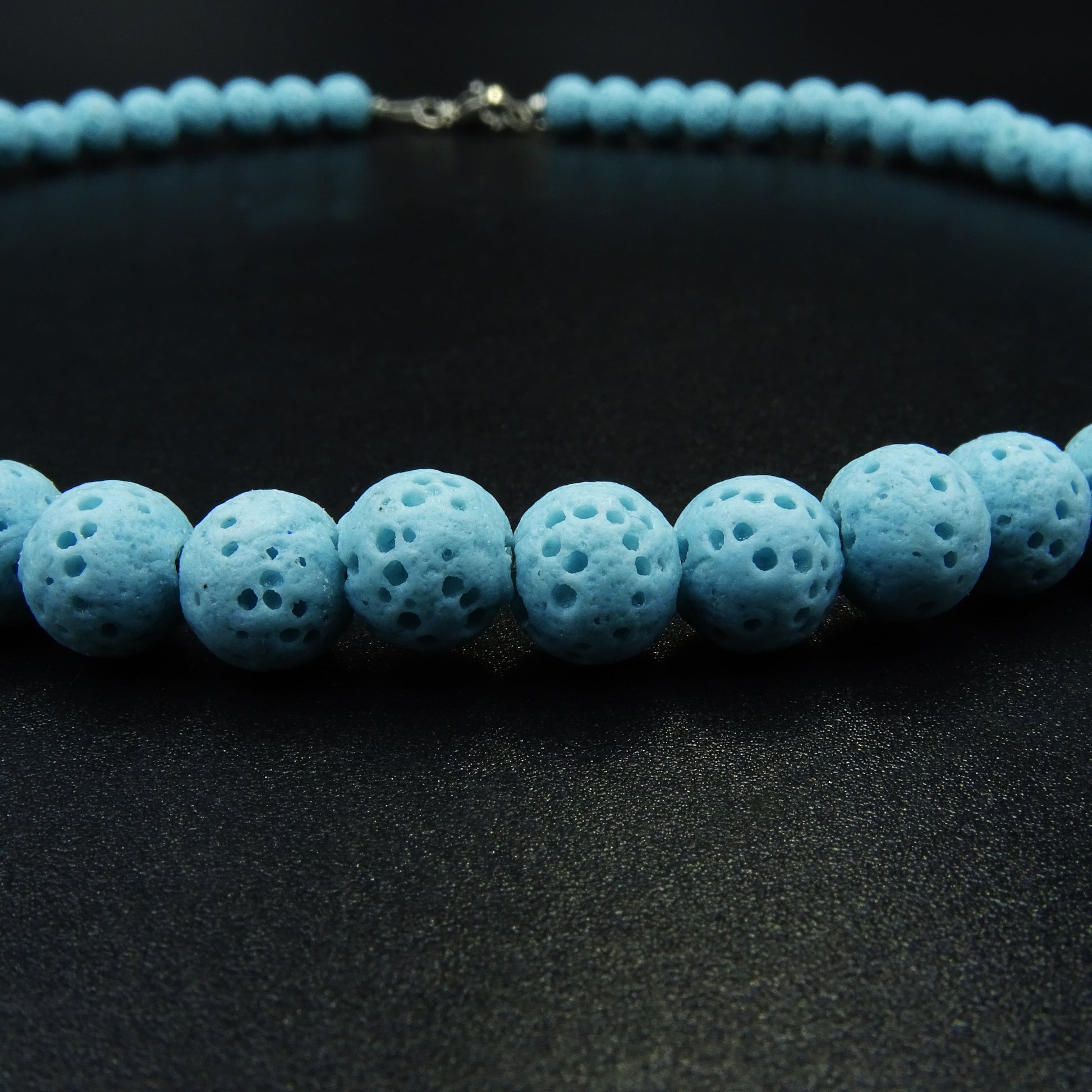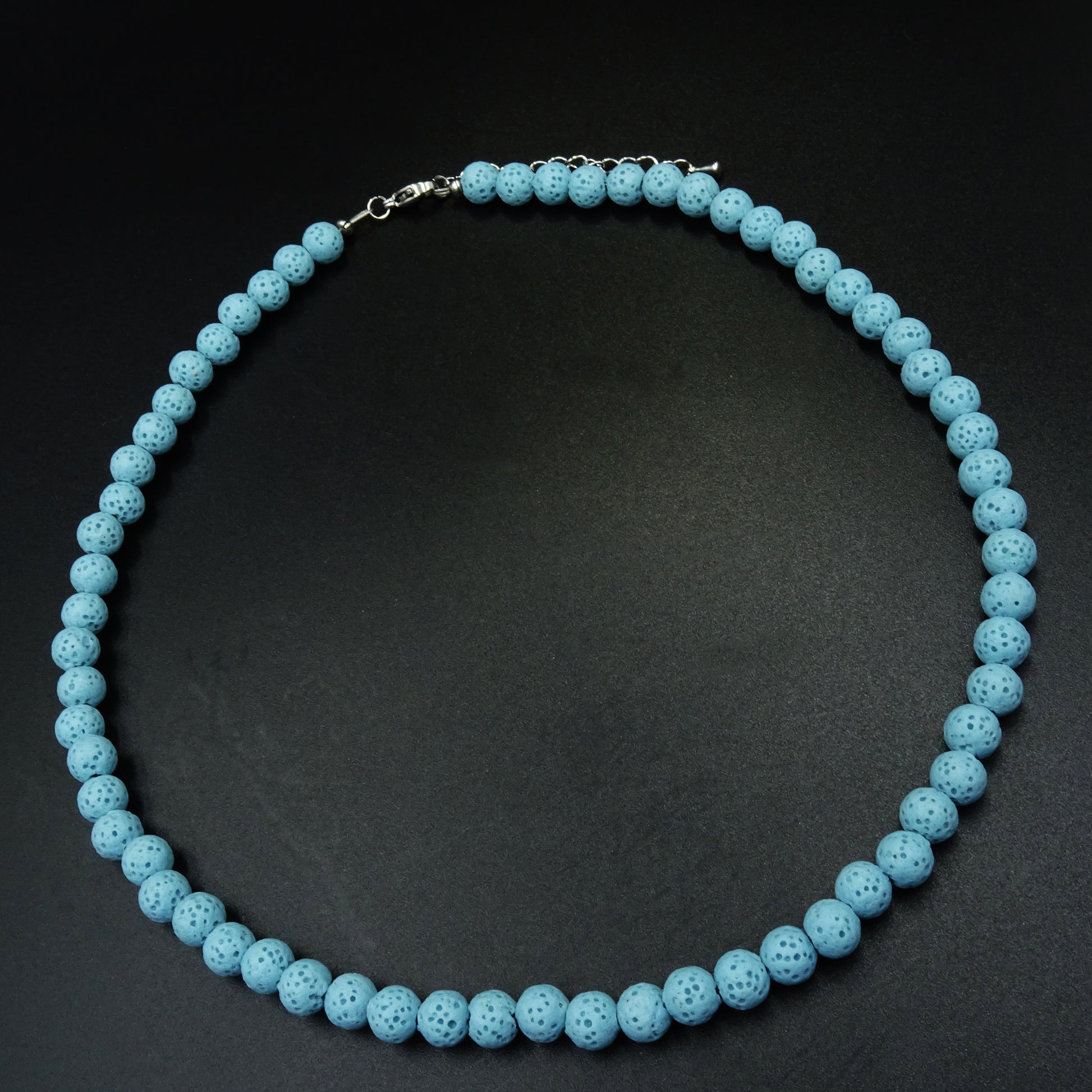 A unique blend of strength and airiness, Skyfire Stone is crafted from light blue lava stone beads, each with a distinctive porous texture. Representing the balance of fire and air, this necklace combines earthy rawness with a celestial lightness. The stainless steel hardware ensures durability, making it both a bold and grounding accessory.