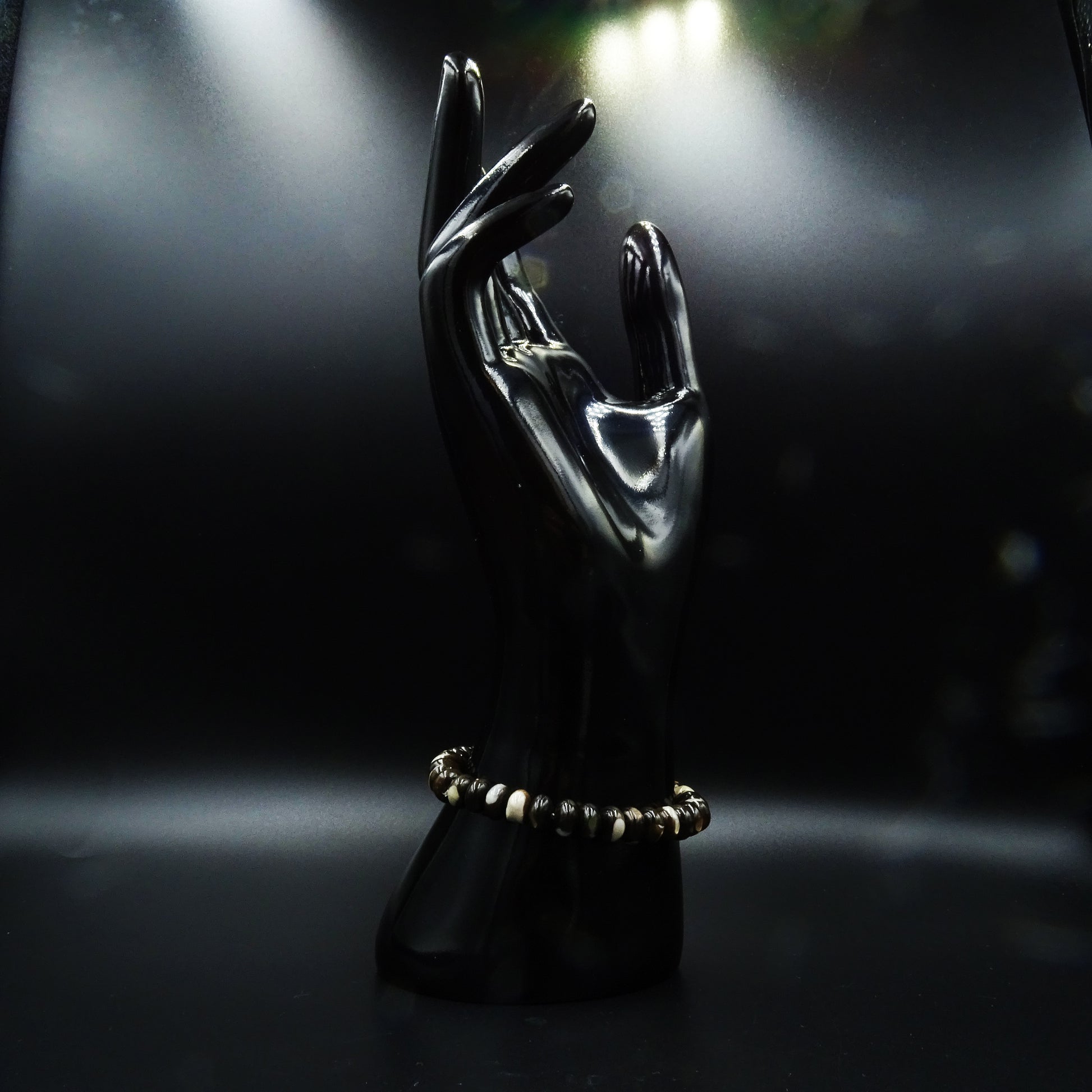 Dark as the ocean's depth, bright as moonlit waves—Tideborn captures the natural contrast of the sea. Made from shell, it holds the rhythm of water and mystery.
