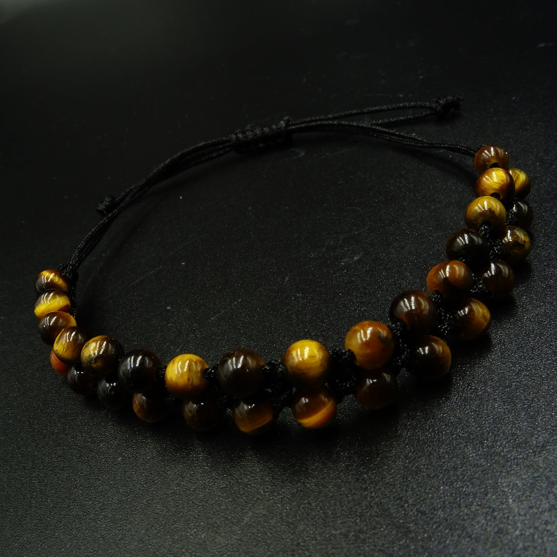 A denser weave of Tiger’s Eye beads amplifies dominance and resolve. This piece represents mastery over fear and the quiet strength of those who lead without force.