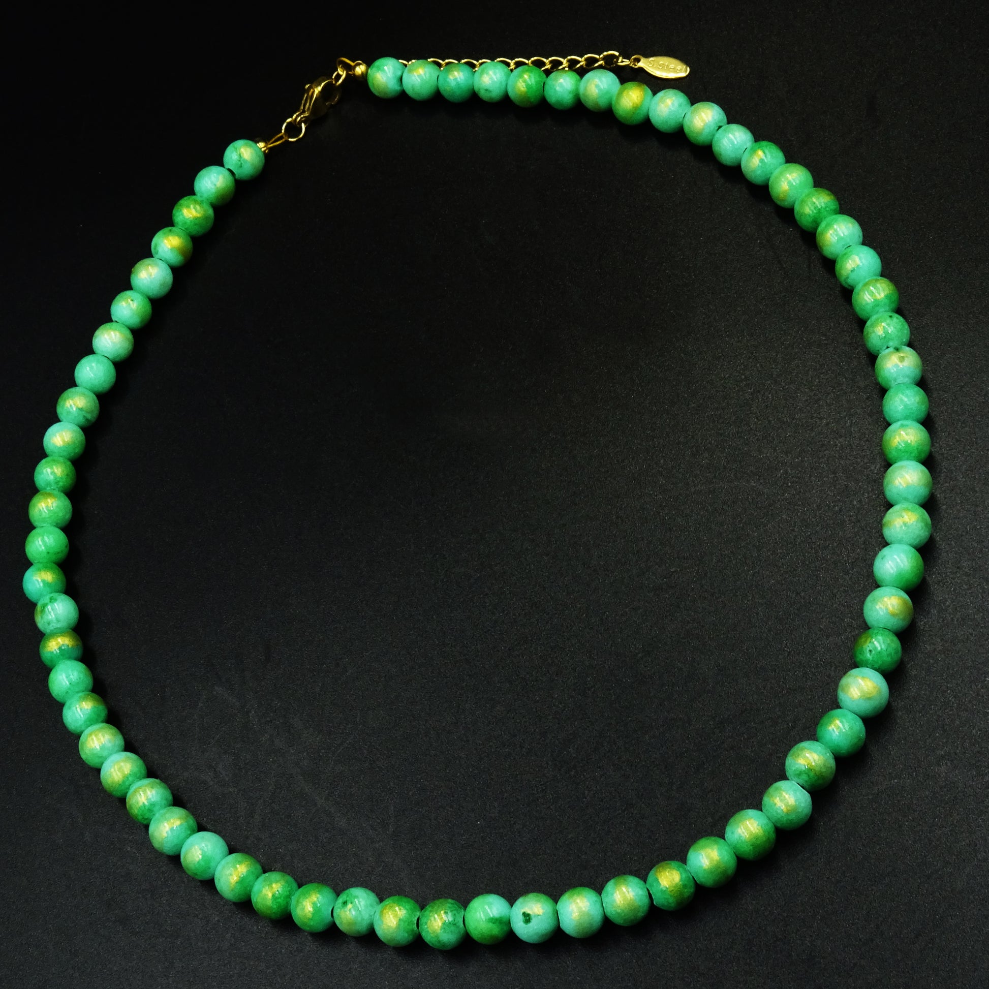 Green and gold marbled beads blend like sun filtering through jungle leaves. Verdant Mirage is a fresh breath of tropical air — lush, bright, and alive with mystery.