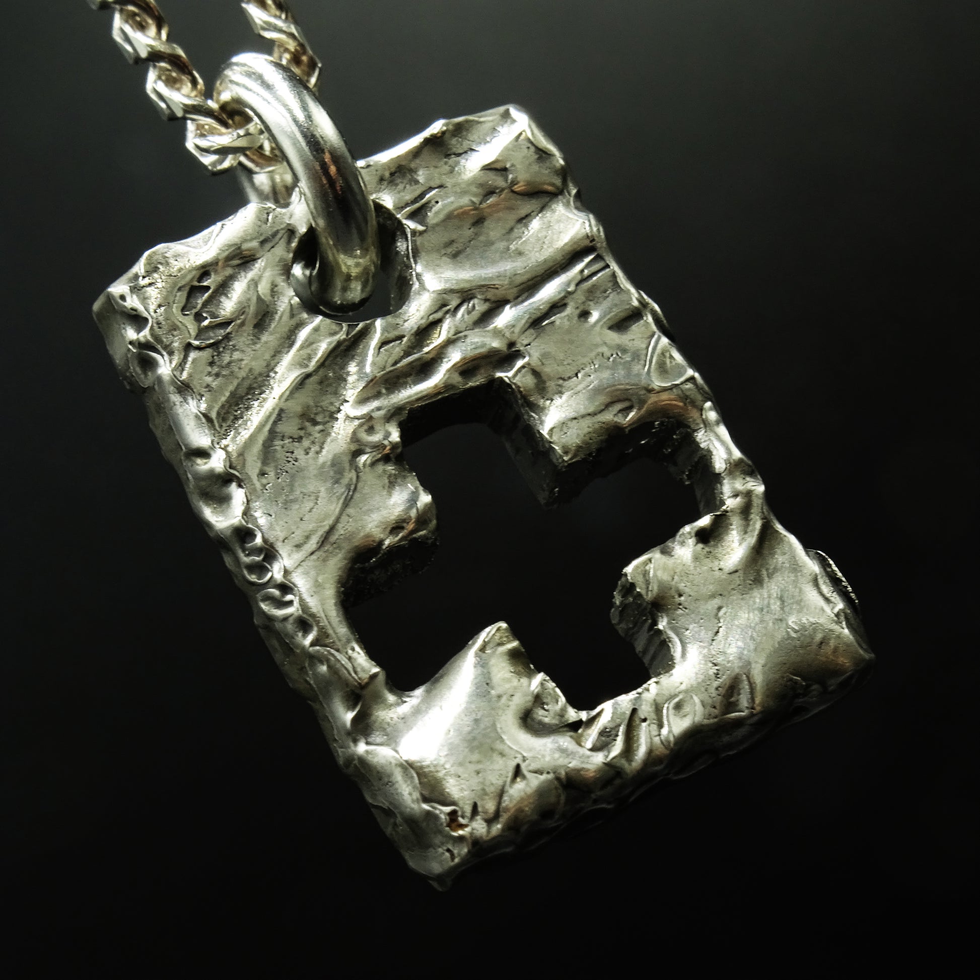 Within the heavy silver frame lies an empty cross — a hollow carved out by fire and force. Void Sanctum represents the sacred space within absence, where silence speaks louder than form. Both relic and paradox, it is a symbol of what is unseen yet ever-present.